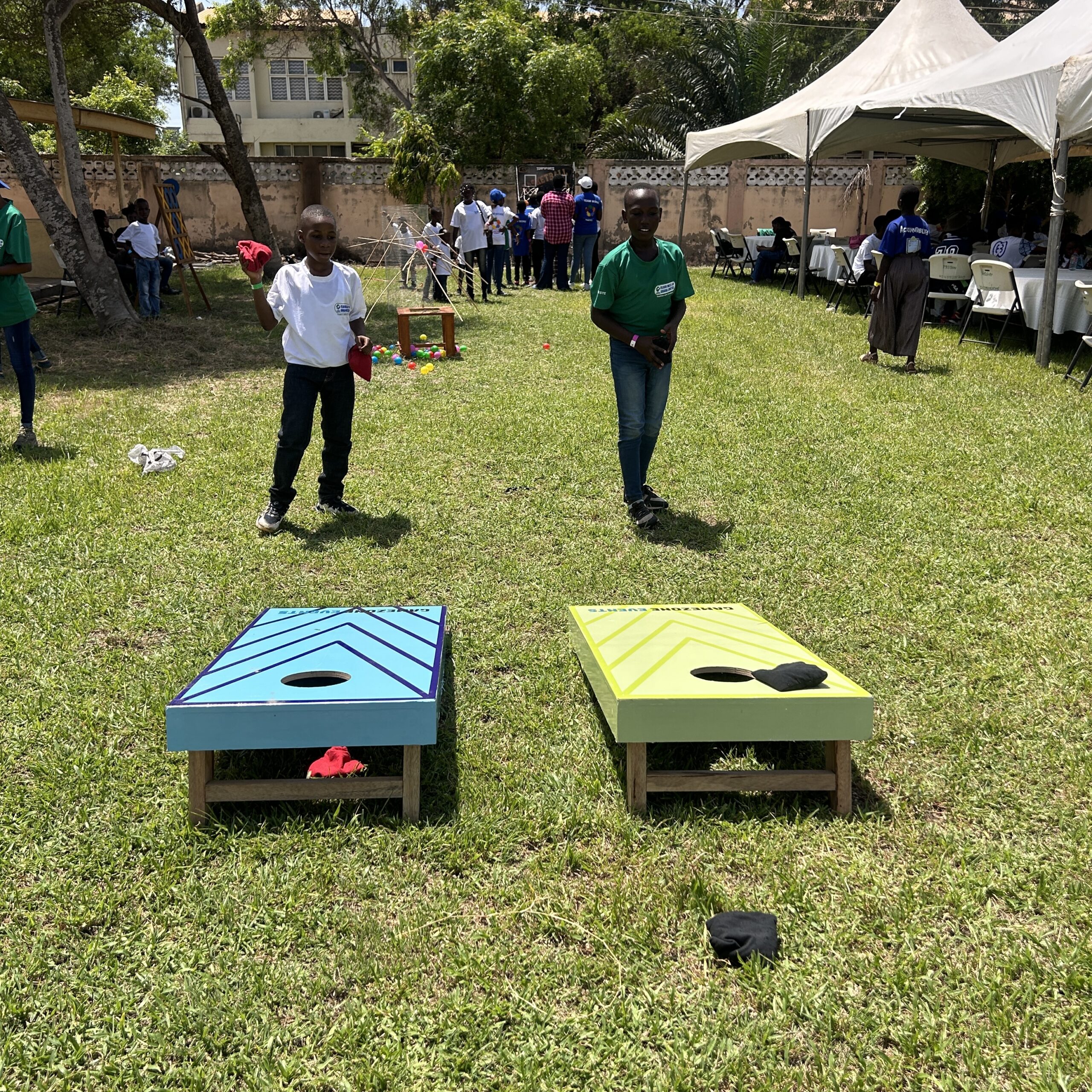 Corn hole toss in action