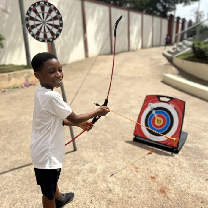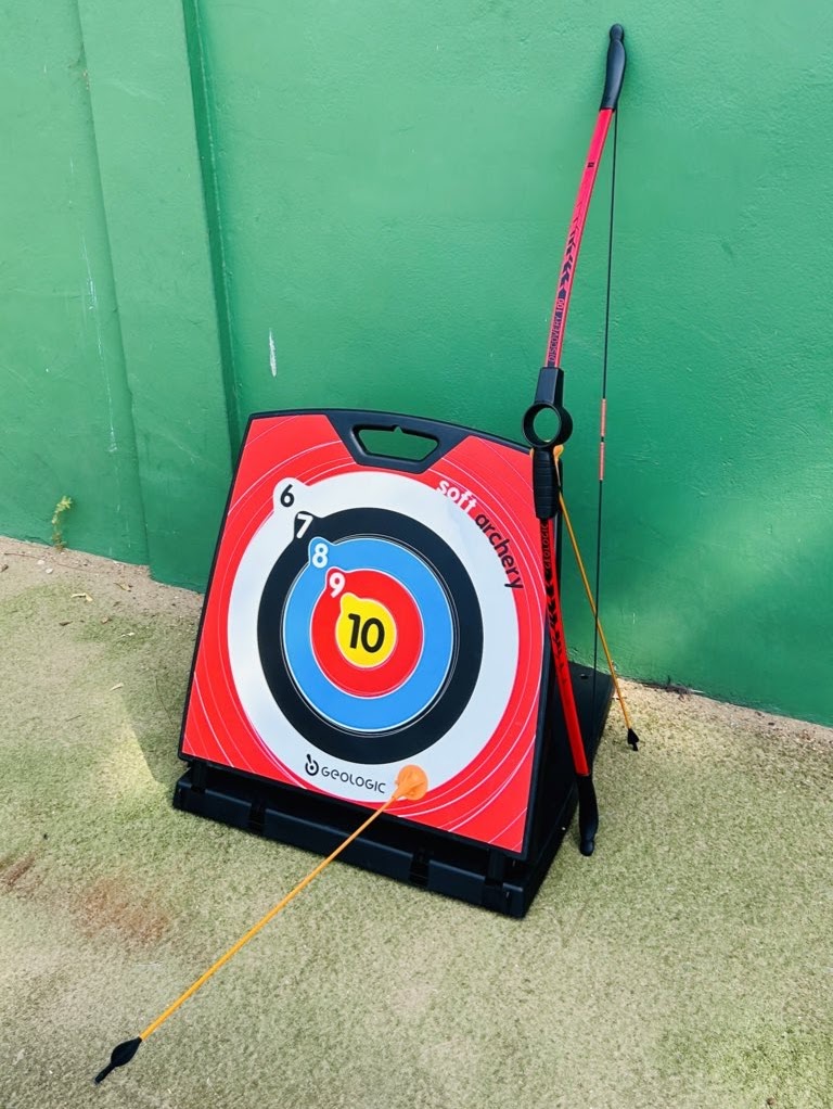 Have fun trying out a game of archery with the soft archery game. It has suction cups instead of sharp tips making it safe for everyone…even kids. It has 1 bow, 2 suction cup arrows and 1 target.