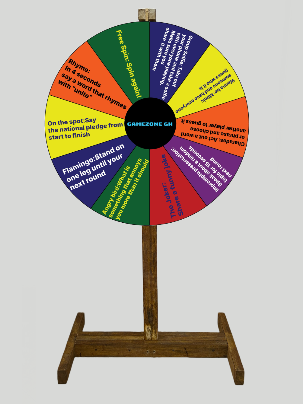 3. Trivia or Challenges: Assign challenges or trivia questions to different sections of the wheel, and whichever section it lands on, the player must complete the task or answer the question.
