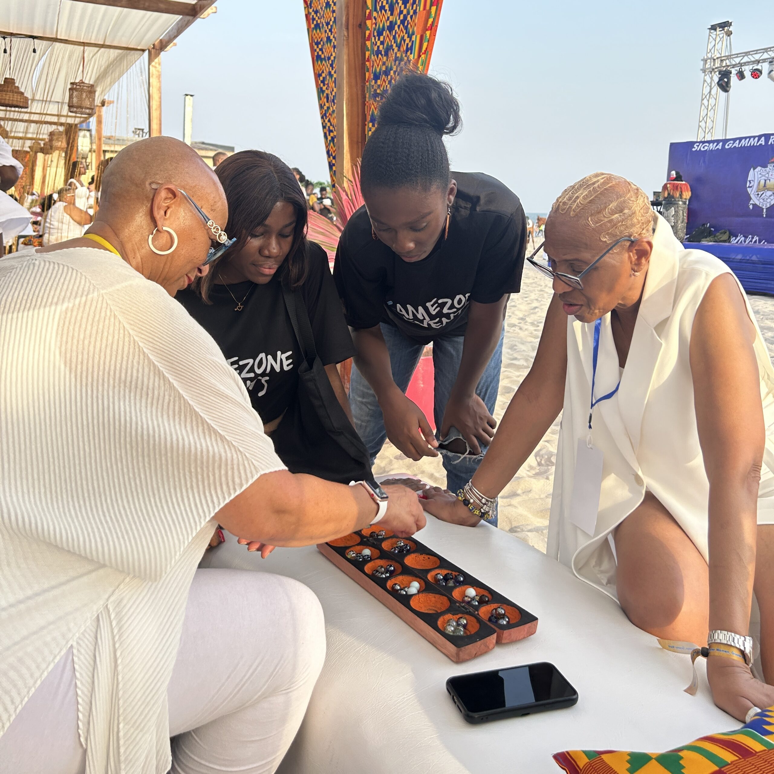 All smiles at the Labadi Beach Hotel in the company of motion events and the Sigma Gamma Rho Sorority Inc. during their visit to Ghana