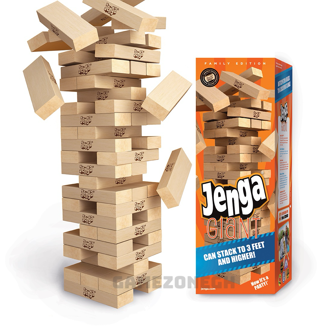 Starting with the one who built the tower, players take turns removing one block from any level below the highest completed one and placing it horizontally atop the tower, perpendicular to any blocks on which it is to rest. Each player may use only one hand to touch the tower or move a block at any given time, but may switch hands whenever desired. Once a level contains three blocks, it is complete and may not have any more blocks added to it. A block may be touched or nudged to determine whether it is loose enough to remove without disturbing the rest of the tower, but it must be returned to its original position if the player decides to move a different one. A turn ends when the next player in sequence touches the tower or when the agreed time has elapsed since the placement of a block, whichever occurs first.The game ends when any portion of the tower collapses, caused by either the removal of a block or its new placement. The last player to complete a turn before the collapse is the winner.