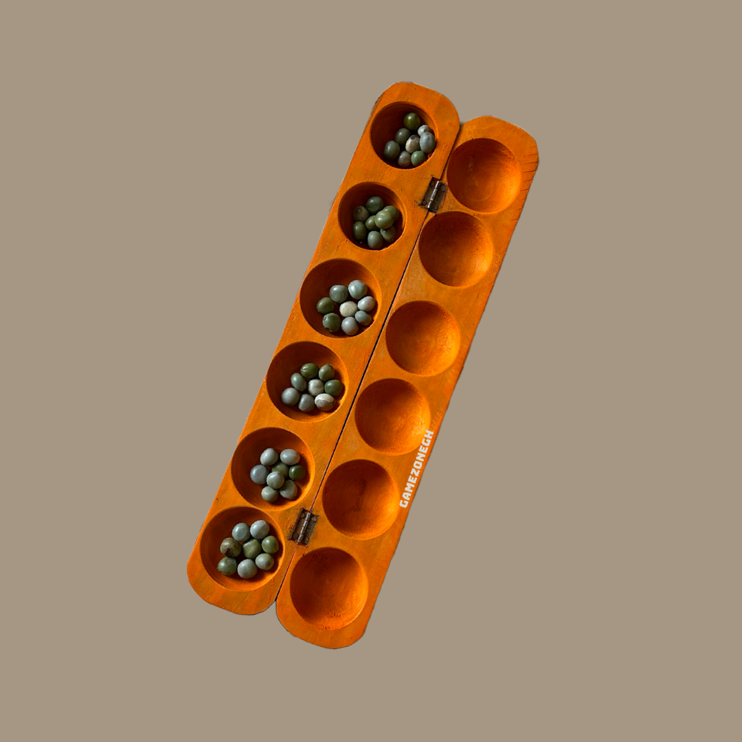 The game starts with four seeds in each house. The objective of the game is to capture more seeds than one’s opponent. Since the game has only 48 seeds, capturing 25 is sufficient to win the game. Since there is an even number of seeds, it is possible for the game to end in a draw, where each player has captured 24.